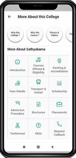 Enrolin allows you to see complete information about colleges. This information includes, the available courses and their eligibility criteria, ranking and accreditation, fees, transport and hostel, scholarship, admission procedure, brochure, placements, testimonials, and FAQs. Enrolin even allows you to request a call back from the college.